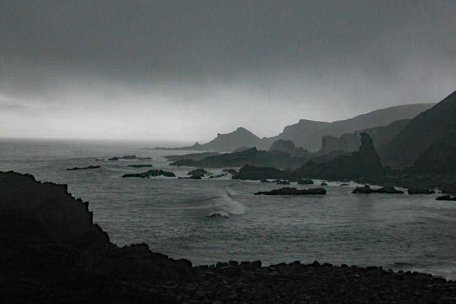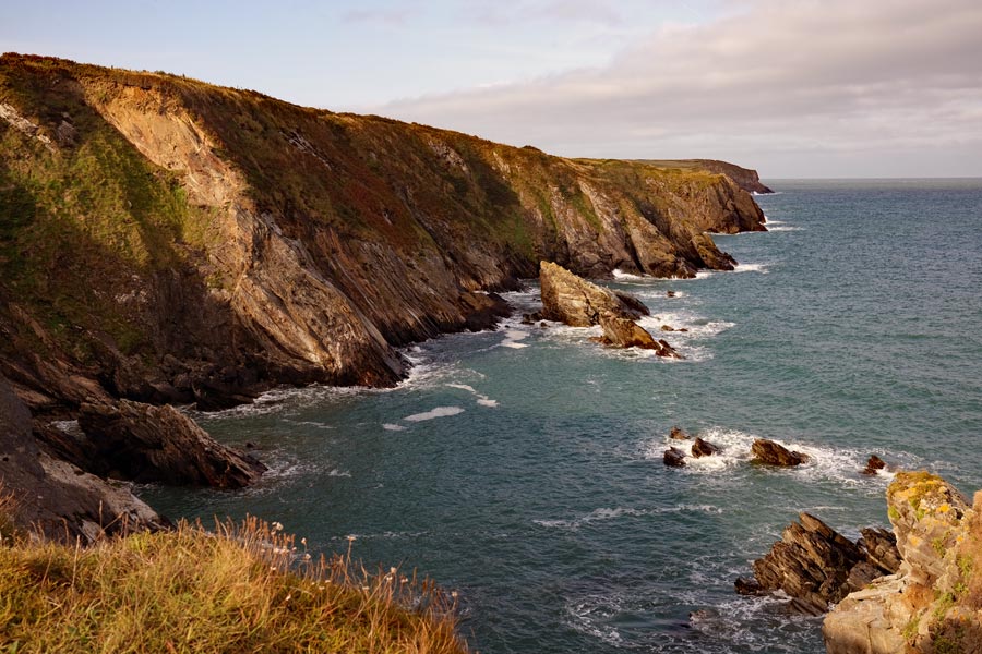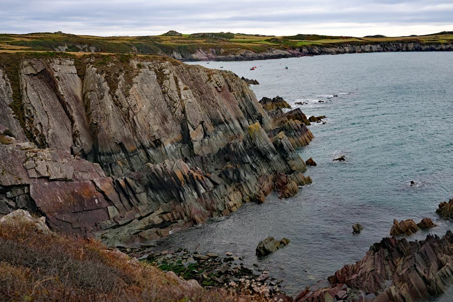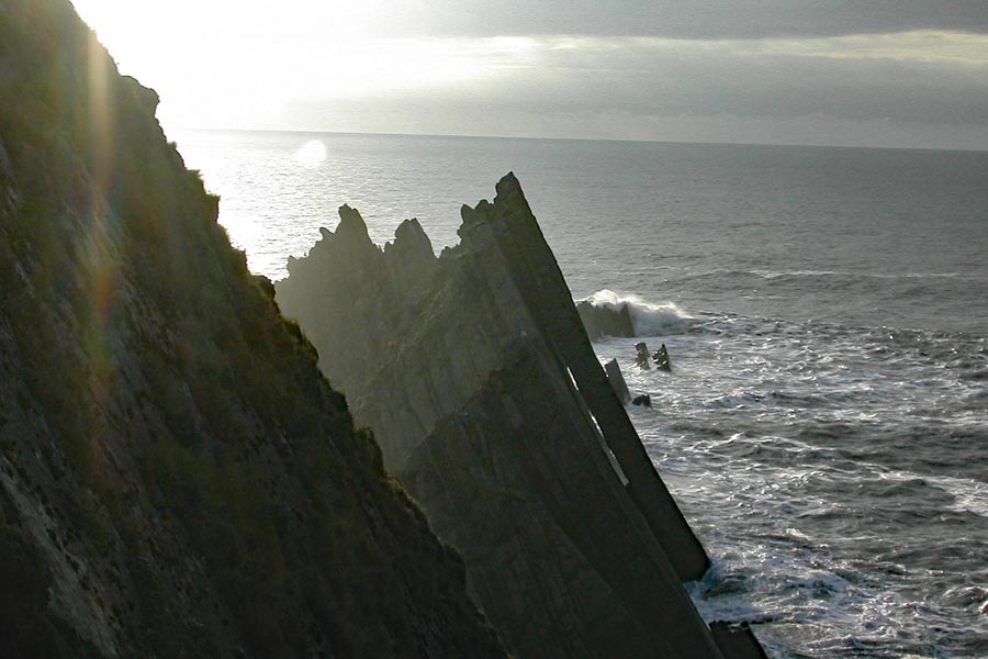 Inclined rock plates near Hartland Quay. Day walk March 2004.