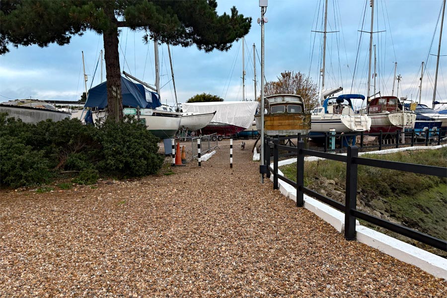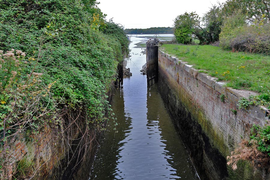 I turned south to walk along the banks of the Fishboure Channel, across the slipway and the disused lock gates at Salterns Lock at the Chichester Ship Canal entrance, where there are houseboats moored. The footpath then passes the marina and shipyard, all very interesting.