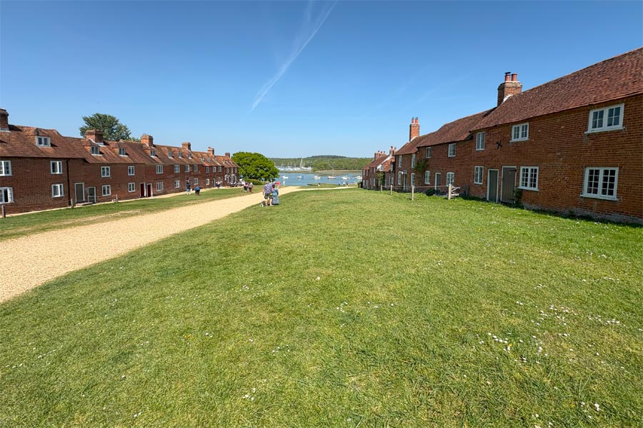 Next day was an early start. I walked through Keyhaven again and continued alongside the water's edge all the way to Lymington. There was a cloudless sky and the sun was hot but a luckily a cool breeze was blowing. At Lymington I had a light breakfast at a cafe overlooking the waterfront. My left big toe was feeling sore. On investigation I found that the insole of my left boot had worn into a hole and my toe was rubbing on the edges of the hole and had produced a large blister. After stopping off at Mountain Warehouse to buy some replacement size 11 insoles, I dealt with the blister, applied a Compeed plaster to the raw skin and walked out of town. The walk was through fields for nearly 4 miles and then along hot country roads for just over 4 miles to reach Bucklers Hard on the Beaulieu River.