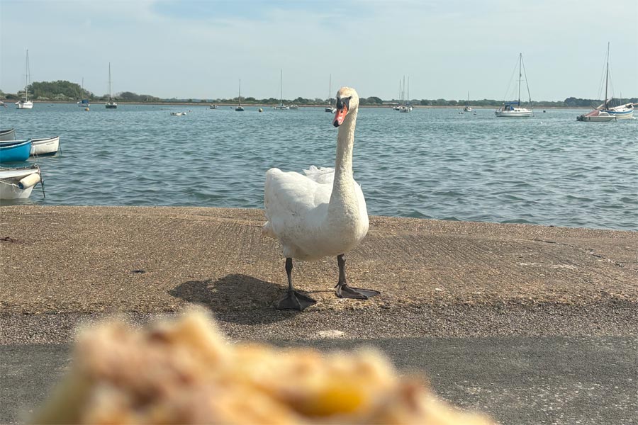 | The Mill Pond Emsworth | Swan eyeing up my pasty |